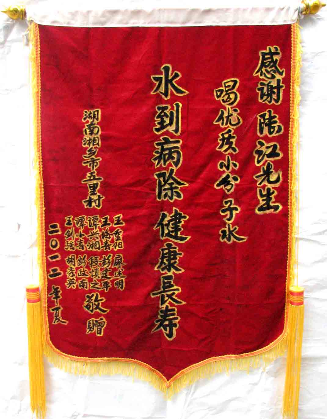 2015年潘志山主動寫一篇感想《我以親身實(shí)踐打破了冠心病、高血壓、糖尿病需終生服藥的神話》說:“堅(jiān)持按發(fā)明人陸?江先生倡導(dǎo)的用‘已饑方食’的方法合理膳食,我的健康狀況越來越好:糖尿病造成的視力下降有了明顯的恢復(fù),末梢神經(jīng)炎導(dǎo)致的指端潰爛現(xiàn)在完全痊愈,痔瘡自從飲用微小分子團(tuán)水半年后就再也沒有復(fù)發(fā)過,氣滯血瘀造成的嘴唇暗紫也漸漸變得紅潤,舌下靜脈黑紫消失,足背的動脈由以前的隱約感到跳動現(xiàn)在變得清晰有力。”[13]潘先生披露的訣竅,一是飲用微小分子團(tuán)水給脫水細(xì)胞補(bǔ)水,二是“已饑方食”養(yǎng)生智慧,患者都能做到。