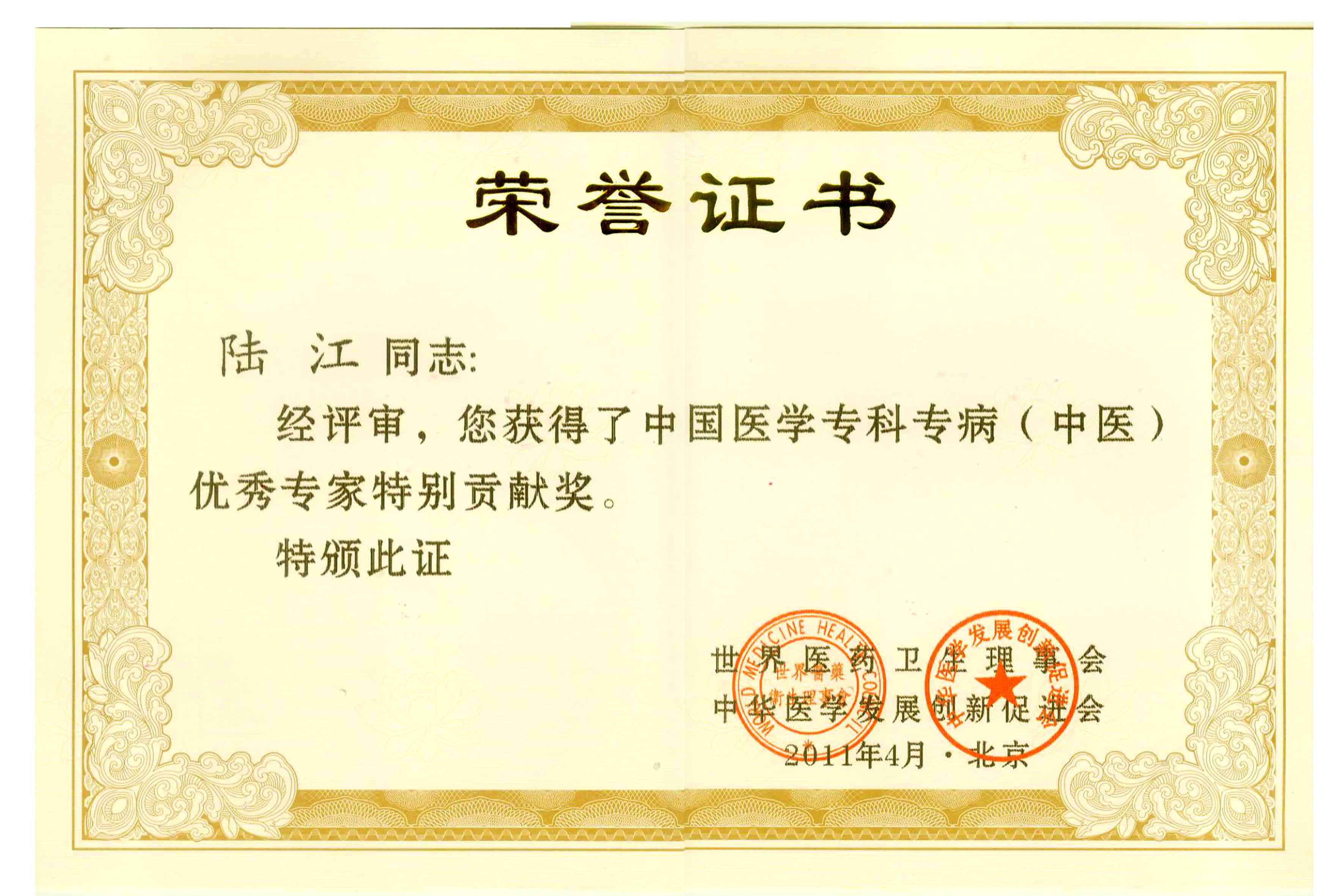 陸江獲得中國醫(yī)學(xué)專科專病優(yōu)秀專家恃別貢獻(xiàn)獎
